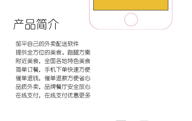 邹平自己的外卖配送软件。提供全方位的美食、跑腿方案;附近美食,全国各地特色美食;简单订餐,手机下单快速方便;催单退钱,催单退款方便省心;品质外卖,品牌餐厅安全放心;在线支付,在线支付优惠更多。